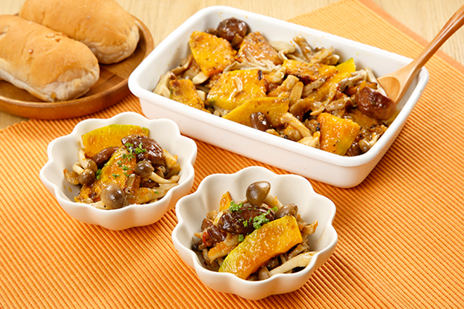 秋の食材を堪能♪ドレッシングで簡単「きのことかぼちゃのマリネ」